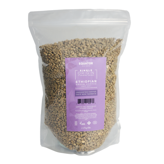 Specialty grade green unroasted coffee beans from farmer co-op, SCFCU, in Ethiopia.