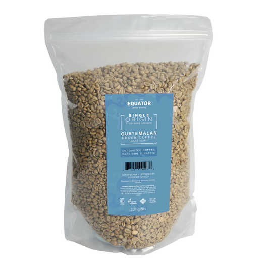Specialty grade green unroasted coffee beans from farmer co-op, Manos Campesinas, in Guatemala.