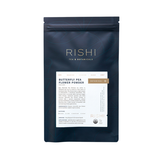 Abounding fresh spring energy with notes of steamed edamame, sugar snap peas, and lightly toasted walnuts. Blue Butterfly Pea flowers...