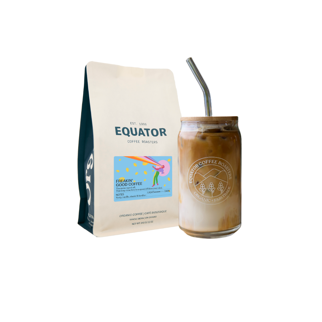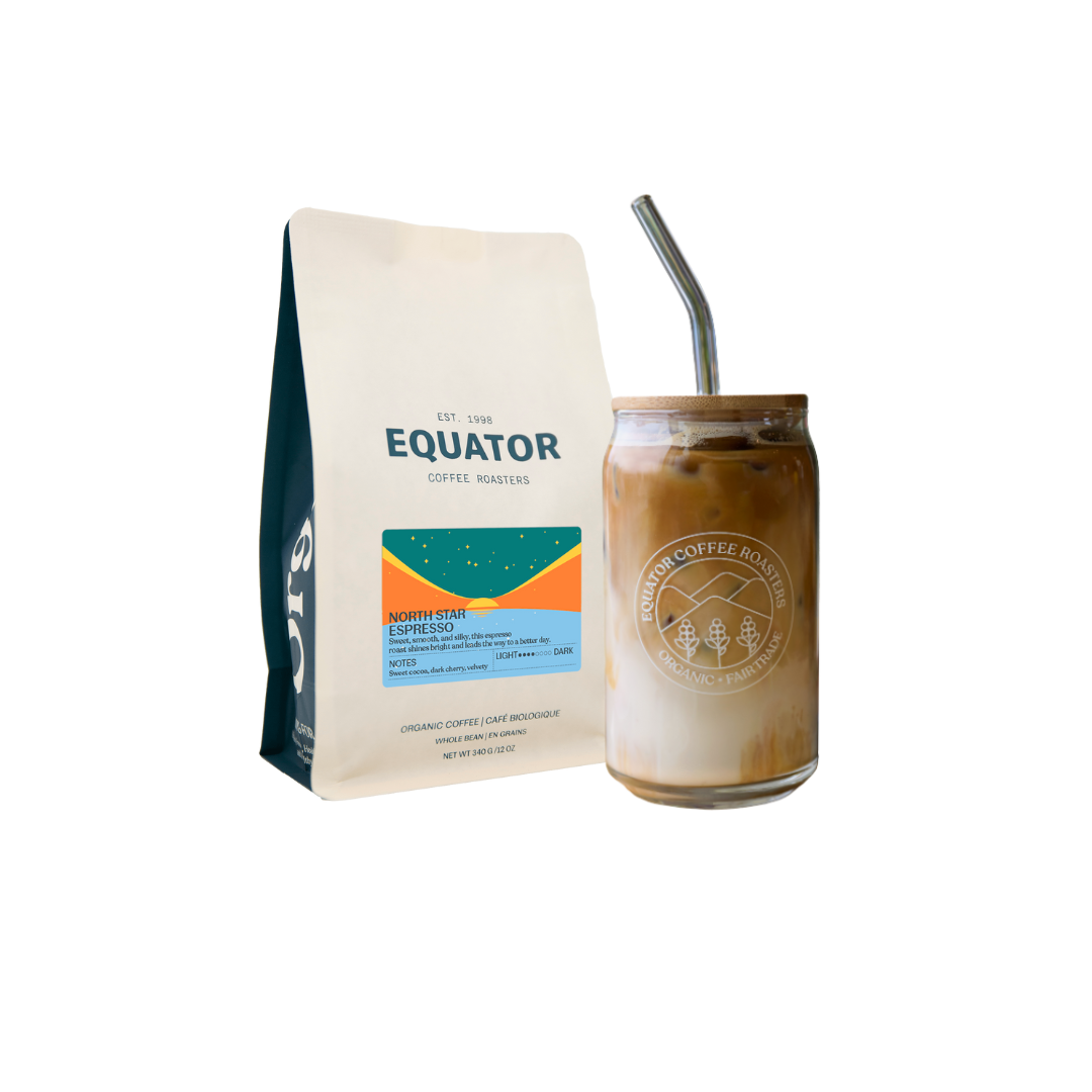 This bundle sold out in our cafes last year, so we brought it to our website. Make some cold brew coffee and enjoy it in our Equator branded 16oz glass with lid and straw.