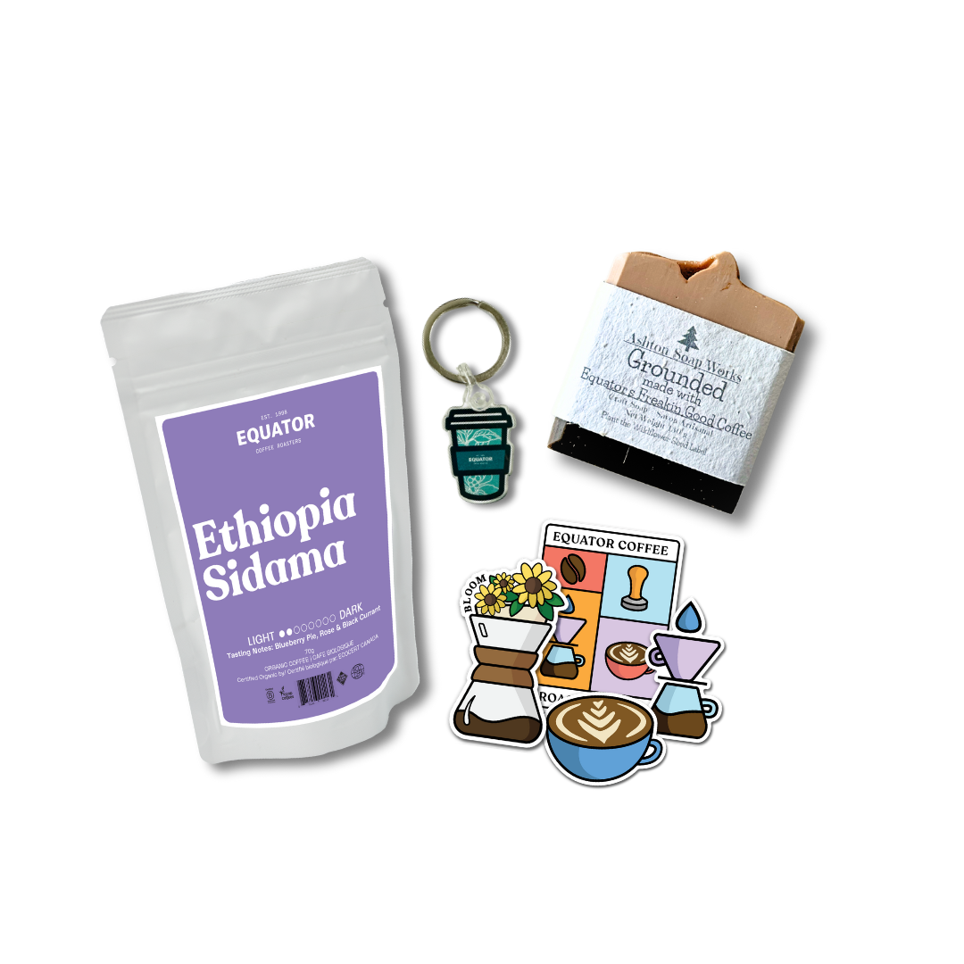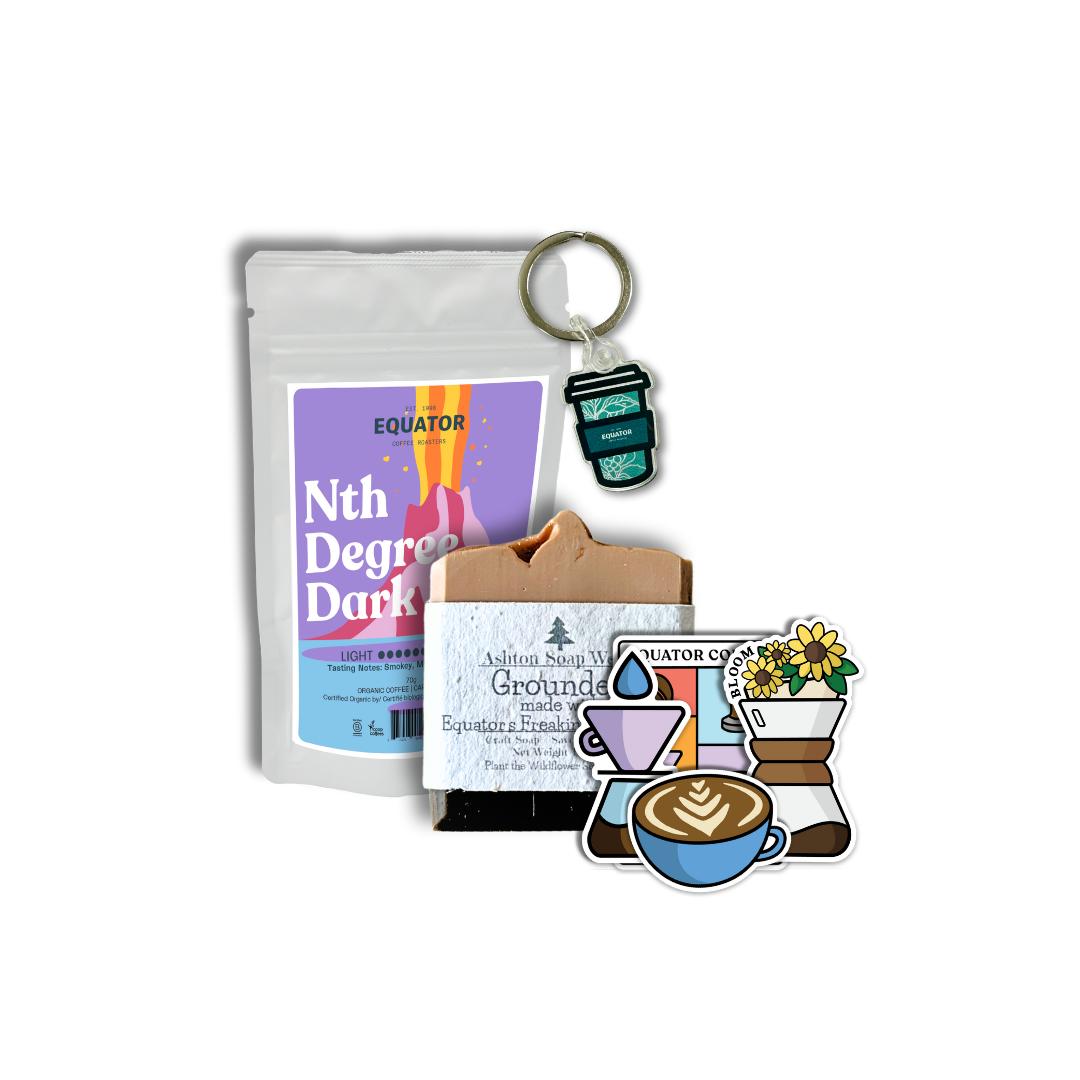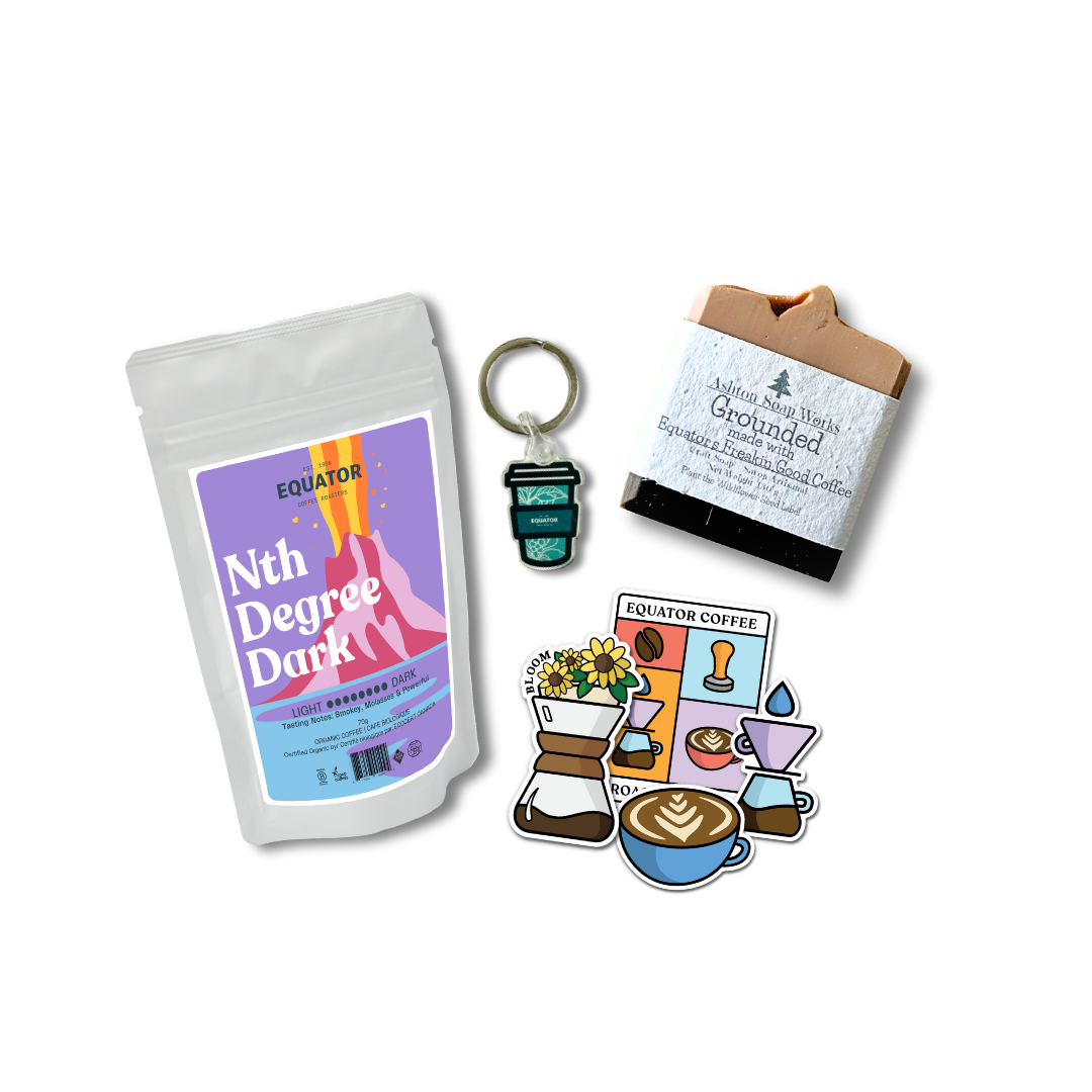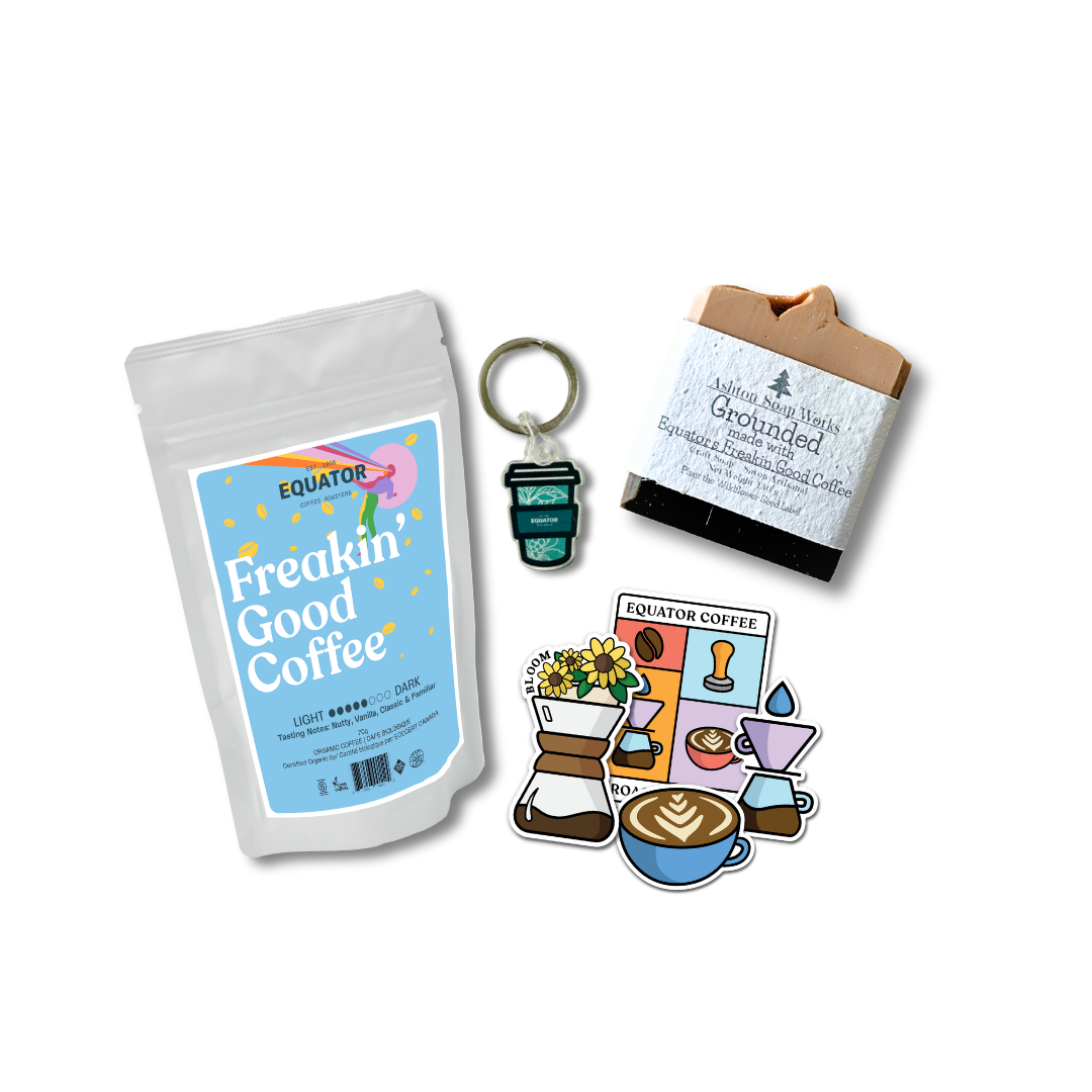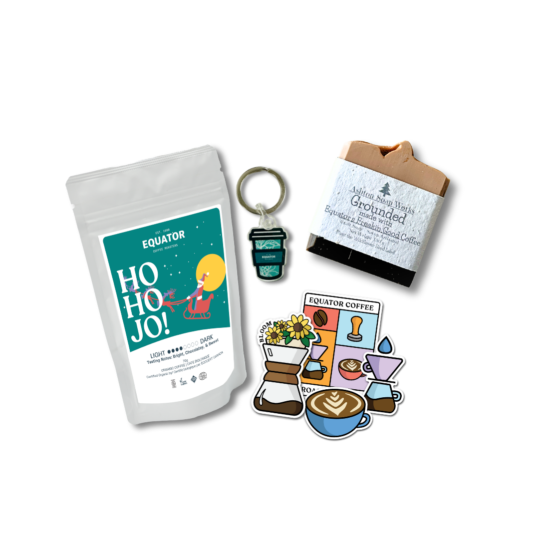 We've put together a fun stocking stuffer for the coffee lover in your life — a handy keychain for on-the-go style, coffee soap for pampering moments, vibrant stickers to brighten any surface, and a generous coffee sample to fuel their day.