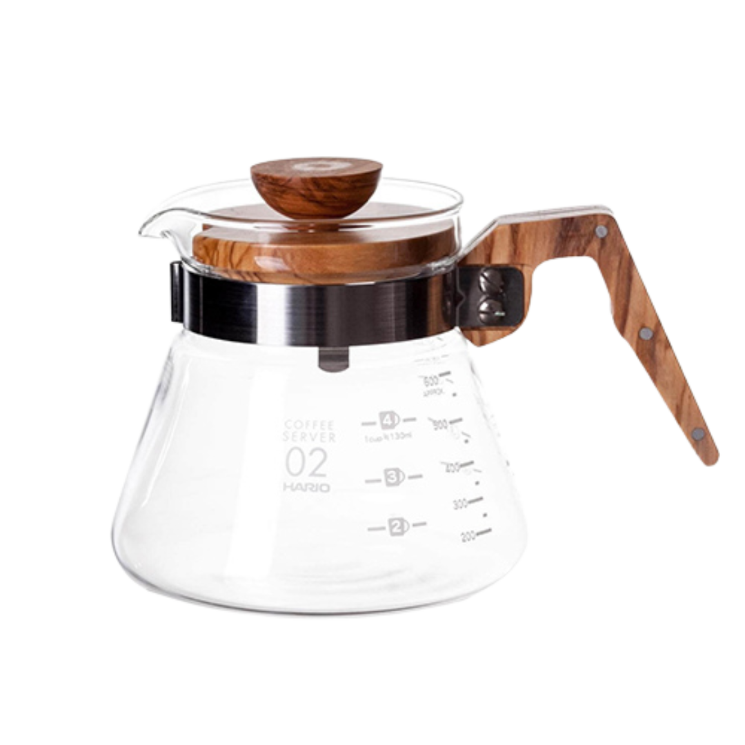 The highest quality Japanese glass, a handcrafted olive wood handle, and simple functionality provide you with one of the most drool-worthy coffee servers. Keeps coffee warm for 2-3 people.