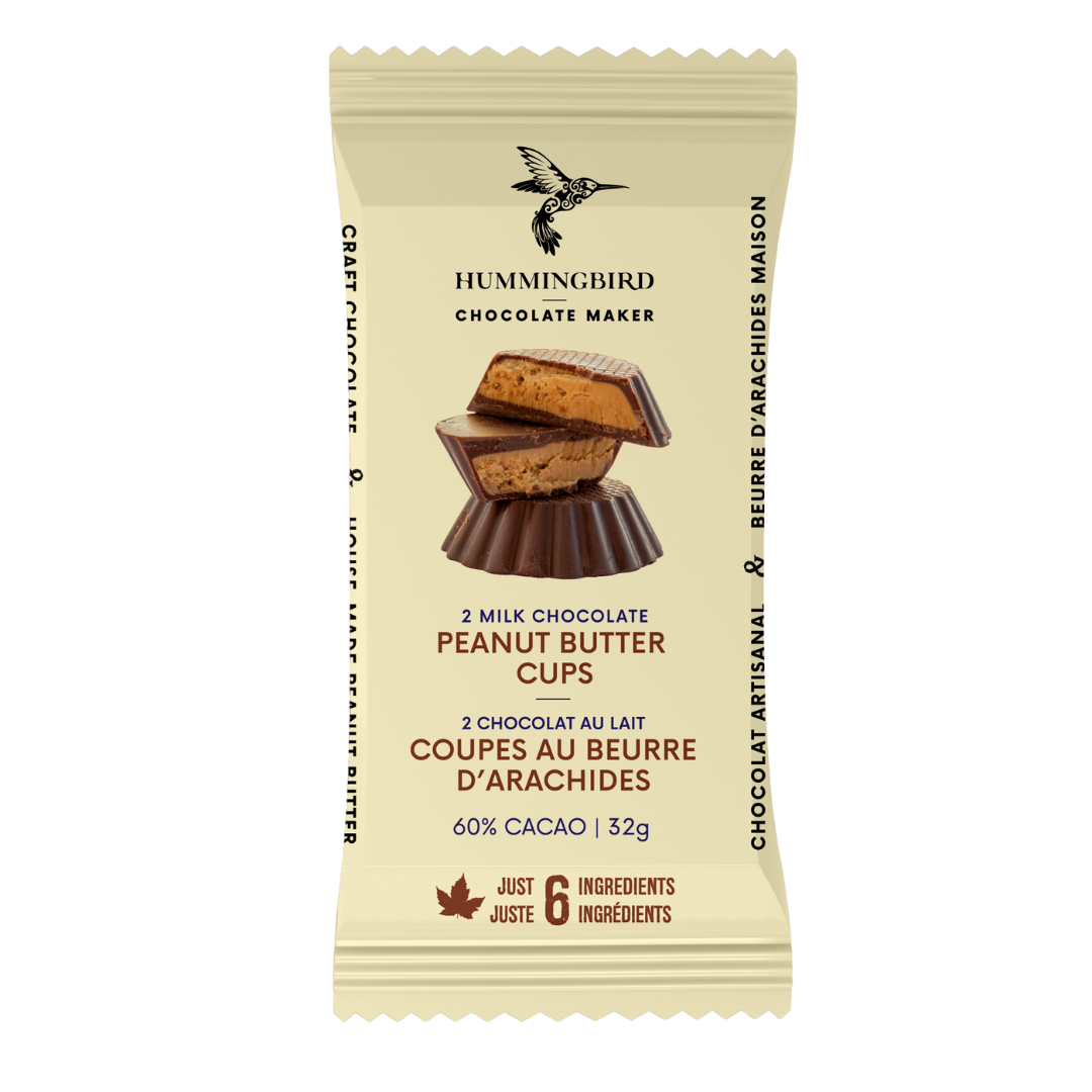 Chocolate peanut buttery goodness! There's something so heavenly about the salty-and-sweet flavour combination of peanut butter and chocolate, and it's hard not to dream about these creamy peanut butter cups made with Hummingbird's bean-to-bar dark milk chocolate. Simple ingredients and simply delicious, these treats are a snacker's paradise!